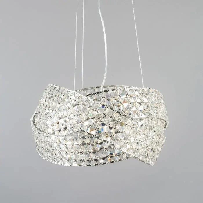 The Cypress Small Crystal Rings Ceiling Pendant is finished in a stylish chrome and covered in crystal effect beads which allows it to shine bright in your room, making it an elegant centrepiece. Â