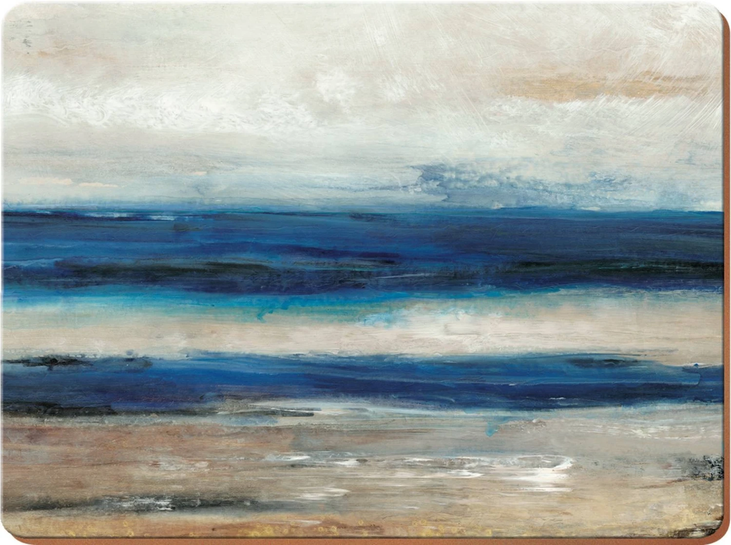 Abstract Ocean View uses deep blues, black shadows and sandy tones to create an intense depth to the scene, giving the illusion of an endless ocean view. Blended together the different shades create an interesting design that will get your guests talking at the dinner table.
