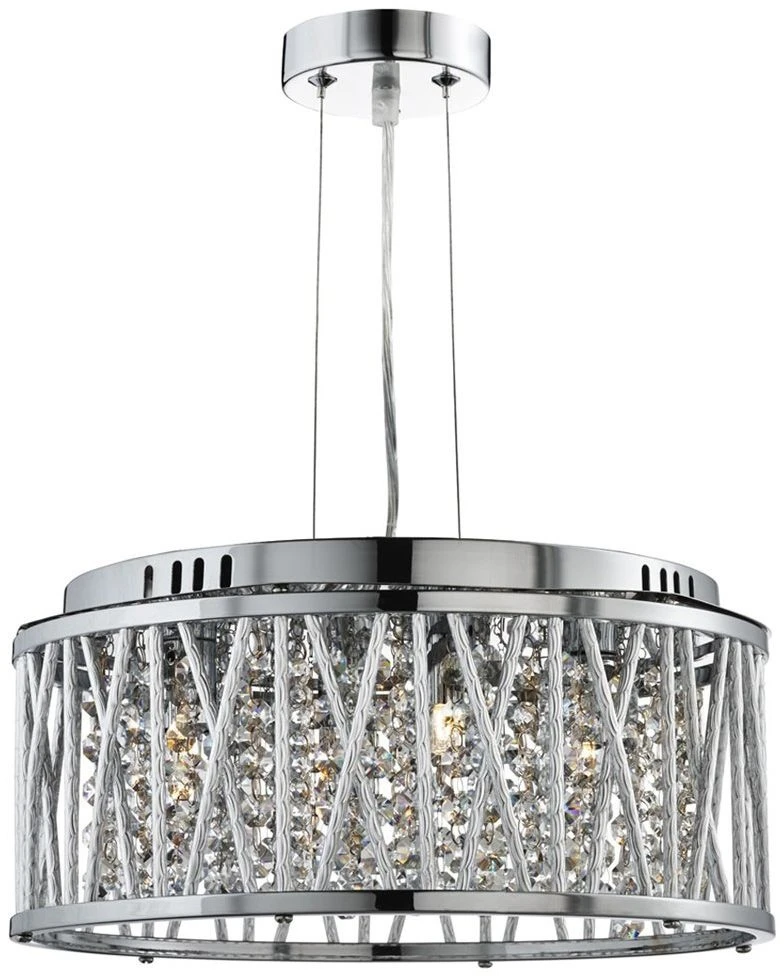 Make a bold statement in your home with the elegant elise chrome & crystal ceiling light fitting from Searchlight. This stylish ceiling pendant has sleek and contemporary aluminium tubes in a criss cross and straight-lined pattern around the outside. The centre is adorned with clear crystal button drops which sparkle beautifully when the light is turned on. This luxurious 4 light ceiling pendant would look great when suspended over the dining table or in a contemporary Living Room. In fact this contemporary ceiling light would bring a touch of glamour and elegance to hallways, bedrooms, or when sited over your kitchen breakfast bar or table.Â