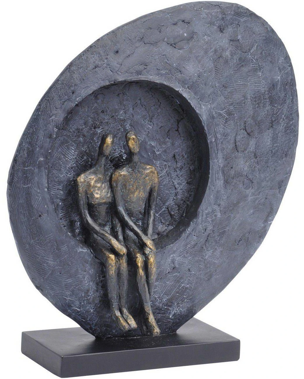 Abstract Couple Sculpture depicts a seated couple, this abstract design features a contemporary oval stand.