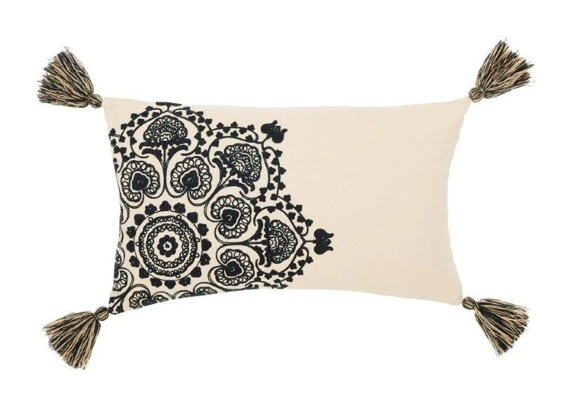 The Granada cushion features a classic embroidered Indian Loop design in a sumptuous cotton-linen blend, finished with cotton tassels on each corner.Â